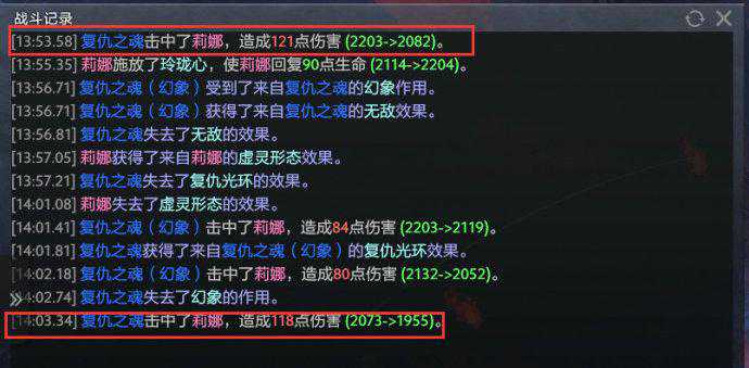 可以看到,复仇之魂带盾复活前后造成的伤害是一样的(121和118只是英雄的攻击力浮动)。