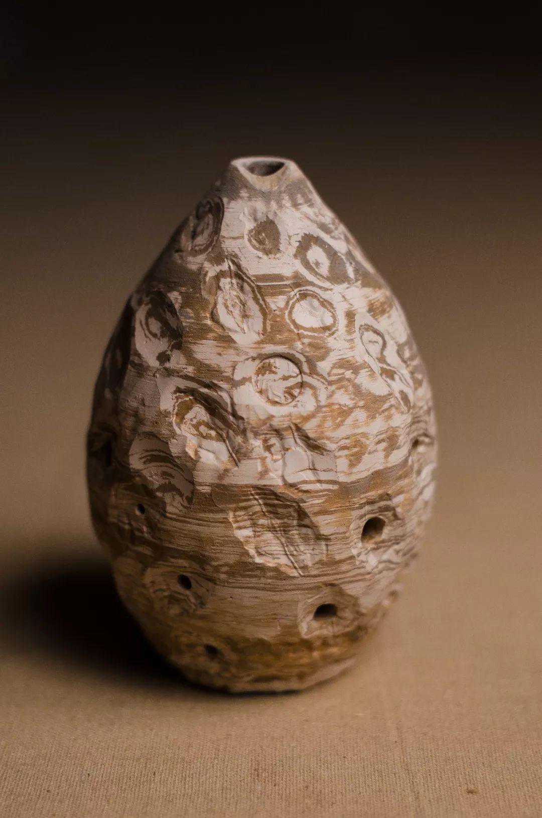 都是土地的儿孙,埙的音色赋有人声的气质,有着自然流露的性情,还有万物终极的灵魂。将埙比人,应该是十分贴切的。上苍用泥造人的时候顺手就捏了埙。人开七窍,有了灵魂,埙凿七孔,有了神韵。