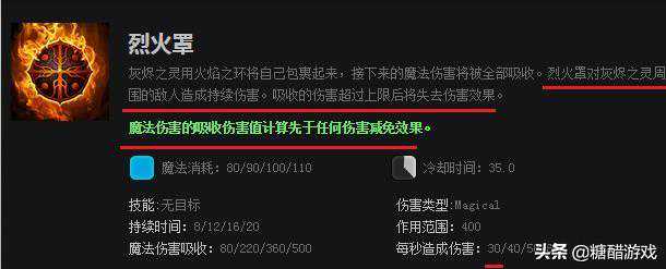 这个技能,俗称开盾,每秒造成的伤害不是很高,在对线脆皮法师英雄的时候,我们可以出门学上一级,去打下压制,毕竟能抵挡魔法伤害,另外脆皮英雄血量不高,我们开个盾追着普攻就能把他打回家。但对于物理类英雄,这个技能是不能减少受到的物理伤害的,这点要记住,别把这个技能当做遇到线上对手是近战斧王时的抗压技能用。