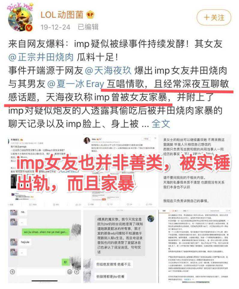imp在18年确实出轨过,这件事已经实锤,而且作为当事人的imp也出来道歉了,按照前LGD女队成员“护理妈”胡雅菁的爆料内容,当时imp在婚前可是拿出了400万把这件事了结了,这要说起来这比德云社的笑笑的300万还多100万!