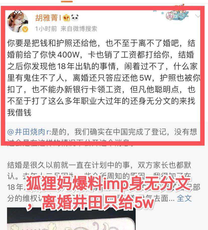 对于imp与井田烧肉离婚这件事,大家有何看法?真就imp的错了呗?