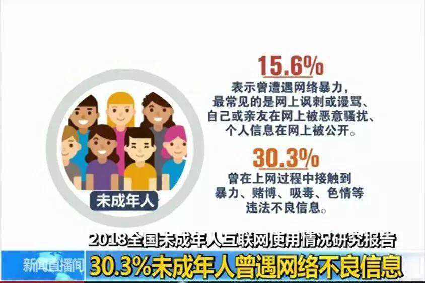 团中央发布报告显示,30.3%未成年人曾在上网过程中接触到暴力、赌博、吸毒、色情等违法不良信息。
