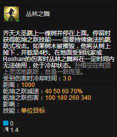 这两个技能都算是二技能,简单地解释就是爬树,下树,爬树可以理解成一个位移技能,要求略微苛刻,要有树,并且跳跃的速度有点慢。下树时可以带来减速的DEBUFF,并造成伤害。(在树上时提供小范围高空视野,要注意的是,如果你的树被砍了,你会被晕在原地四秒,DOTAWTF中就有伐木机给己方大圣的树砍了0.0)