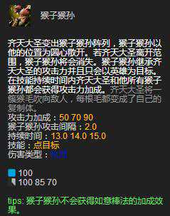 暗灭的减甲加攻,如果猴子猴孙释放的好,亦可以大幅增加队友的物理输出,也增强了自己棒击大地的爆发力。