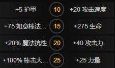 回音战刃是大圣的必出装备,优先级高于任何装备,可以看到,金箍棒法被激活的条件是同一个单位被攻击四次,回音的连击效果可以连续打出两下的普攻,极大的减少了堆出被动的难度。并且这个装备提供的属性也是大圣需要的:冲锋陷阵需要的血量,DPS提升需要的攻速,以及一个平时不太需要技能释放英雄的蓝量续航。