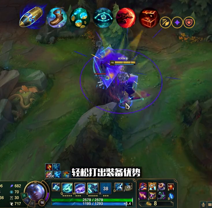·第三个技巧:在被敌人追击时,时刻注意影子的位置。这波对手在追艾克,但是艾克一直在注意自己的影子,成功地利用R技能回到了原点。艾克的R技能后期爆发很高,学会用R打伤害会大大提升你的上限。