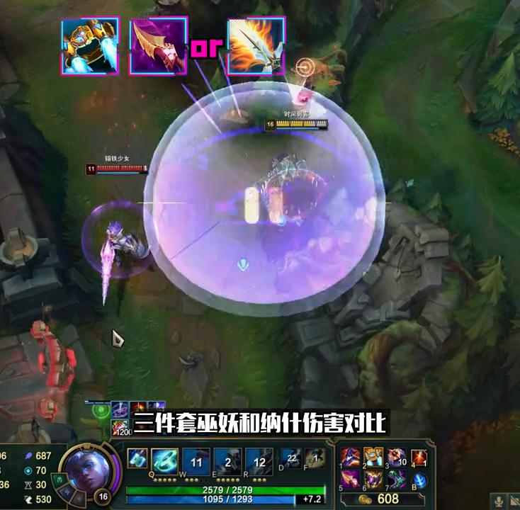 接下来,第二件装备是选择纳什还是巫妖呢?通过装备面板可以清楚地看出,纳什之牙的价格比巫妖贵了200,但是多出了50点攻速和15点法强,而巫妖则是多出了8%的移速。因此,如果你只打三环,那么巫妖会更好,但是如果你A出了第二个普攻,那么纳什的伤害就已经超过了巫妖。