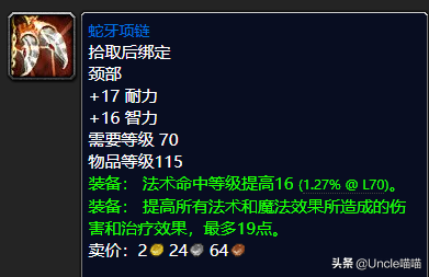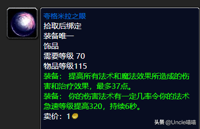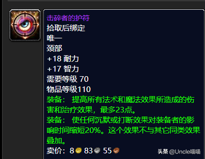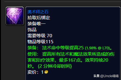 饰品方面的话喵叔个人最为喜欢的就是英雄模式奴隶围栏BOSS夸袼米拉出品的夸格米拉之眼搭配普通模式禁魔监狱BOSS预言者斯克瑞斯出品的希法尔的节点号角可谓是懒人必备神器啊,而且就夸格米拉之眼而言的话喵叔个人感觉带到黑暗神殿都没有任何的毛病好吧,而我们的加持法术命中的奥术师之石个人觉得可以入手一个,当法术命中不够的情况下它真的是优秀啊,统统值得推荐,推荐指数满天星辰直戳天花板,我戳我戳我戳戳戳!
