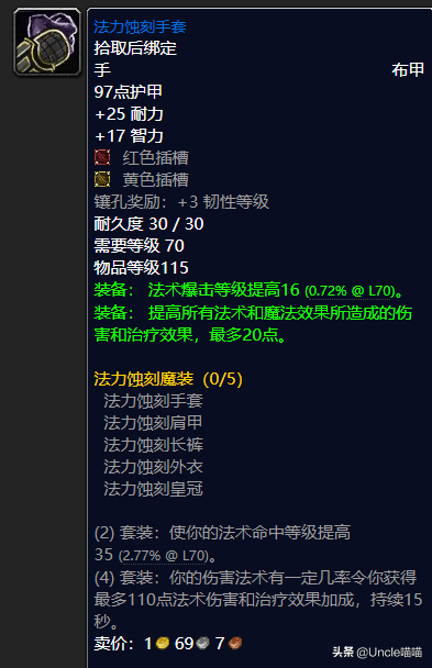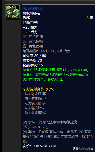 胸部装备而言的话,喵叔也是给大家带来的是三款分别套装、法术命中、法术爆击加持的布甲胸部装备。优先级的话肯定还是套装最好,其他两款的话大家可以根据需求入手即可。统统推荐指数满天星辰直戳天花板,我戳我戳我戳戳戳!
