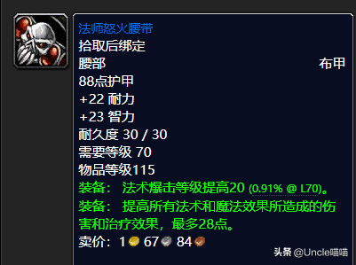 出自于英雄模式奴隶围栏BOSS巨钳鲁克玛尔的冷语束腰可谓是前期冰法必备腰带了,非常的NICE,高法伤高法术爆击高智力高耐力可谓让人非常的想要,而其余两款分别加持爆击的法师怒火腰带以及加持命中的毒蛇女王的腰带的话也是值得非冰法的你入手,当然传统法师入手也是没有任何毛病,经典腰带值得推荐,推荐指数满天星辰直戳天花板,我戳我戳我戳戳戳!