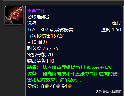 武器方面的话喵叔个人主要还是推荐大家入手这把极品出自于英雄模式塞泰克大厅BOSS利爪之王艾吉斯的泰罗克暗影法杖,非常的NICE,魔杖方面的话真的没有二话就是这款出自于英雄模式幽暗沼泽BOSS黑色阔步者的黑色茎杆,经典的不能再经典了,你值得拥有,推荐指数满天星辰直戳天花板,我戳我戳我戳戳戳!