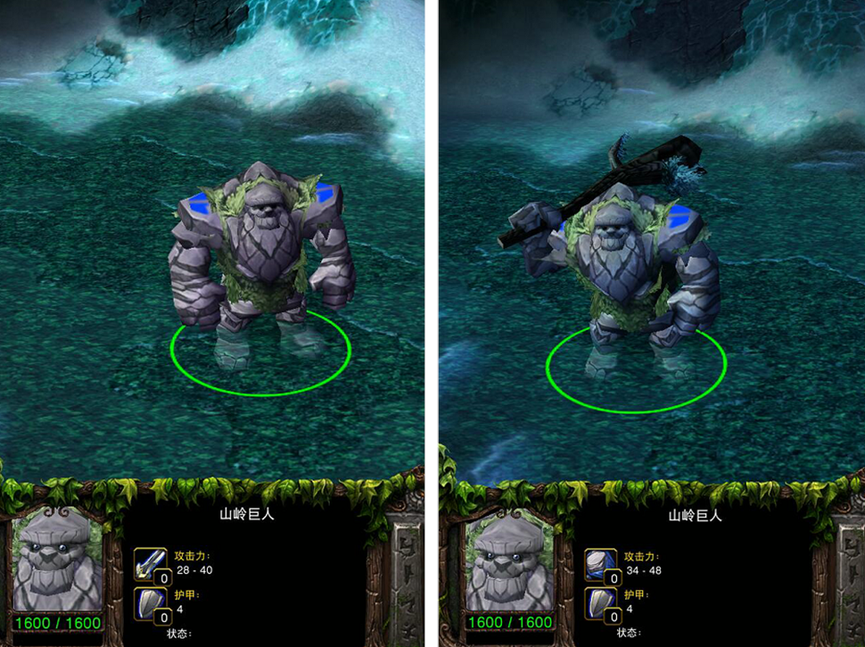 战棍:山岭巨人可以拔出附近的树木当作武器,这时候山岭巨人的攻击属性会变成攻城攻击,攻击距离也会随之提升到250;