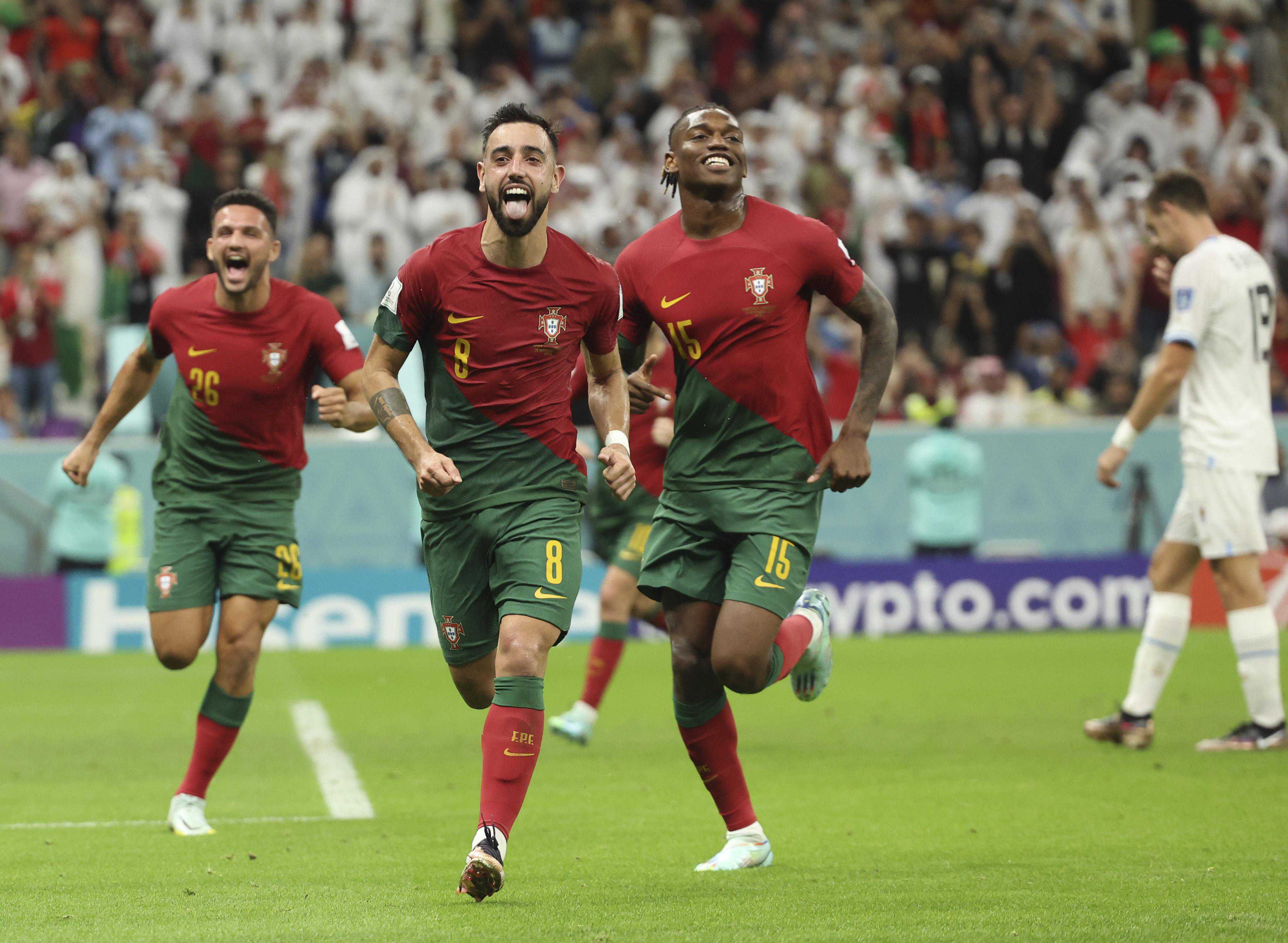 比分在第93分钟扩大,B费的突破造成乌拉圭球员禁区内手球犯规,他亲自操刀打入点球,将比分锁定为2比0。已经被换下场的C罗在替补席上笑容满面地为队友庆祝。双核在终场哨响后搂着肩膀走在一起,B费也得以再次重申本届世界杯的目标,“无论如何,我们都希望C罗举起大力神杯,都希望葡萄牙赢得世界杯。”