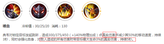 3技能:该技能也有2个要点,挑斩本身是真实伤害并减速敌方3s,后续典韦造成的所有伤害都是真实伤害,持续5s。