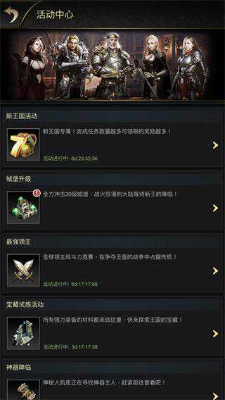 ①、活动类型包括宝藏试炼活动,金币活动,魔法矿活动,怪物攻城,魔王降临(可以在活动中心查看),积极参与活动可帮助您获得大量奖励,千万不要错过发展机会;