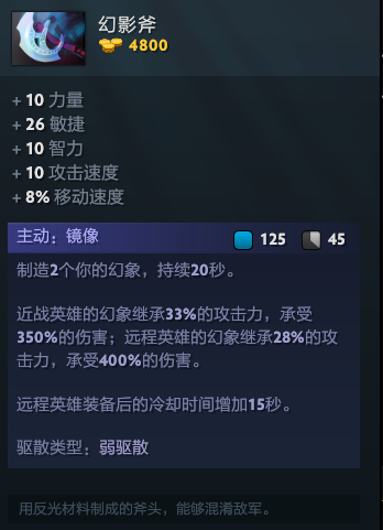 其它装备就不一一罗列了。对于虚空假面来说,使用得最多的撑蓝量装备可能就是假腿了,如果比赛时间够长,能够出到大隐刀的话,大隐刀也是一个不错的选择。