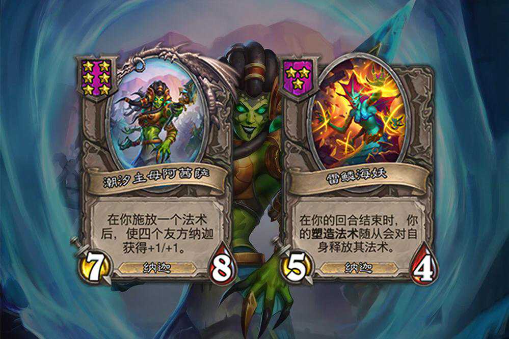 当你阵容中的雷鳞海妖和照看者相继镀金后,这套阵容就可以实现半自动的电表倒转,照看者每回合结束可以提供4个纳迦,回合开始后可以提供2个纳迦,这些纳迦绝大多数又可以提供塑造法术,每回合可以配合主母阿茜萨刷大量的Buff。空位的纳迦随时卖,酒馆内的塑造法术纳迦看到就拿,刷就完事了,非常考验手速(我从来没打完过手牌)。