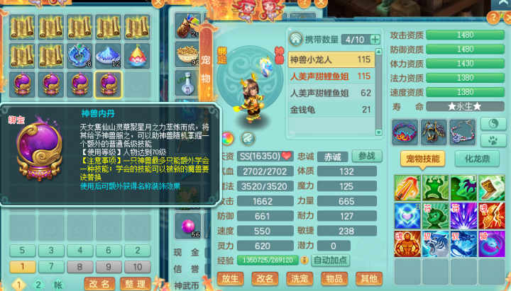 炼妖成功之后就是吃满体元宵然后反向炼化速度资质,争取把速资降到700以下。在反向炼化之前可以先吃长寿面把寿命吃到5W,通过吃面中毒降一点速资。
