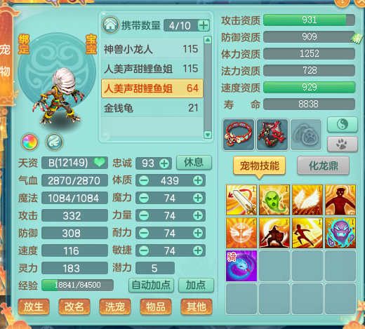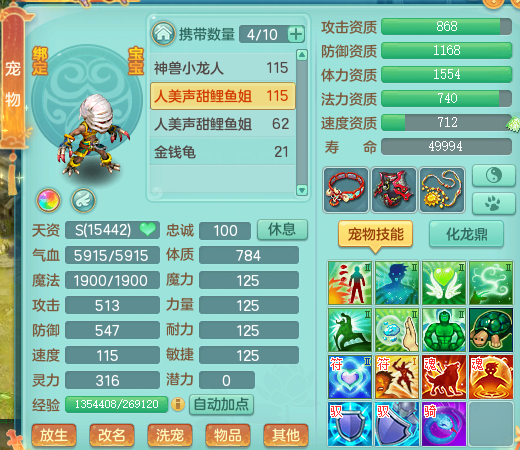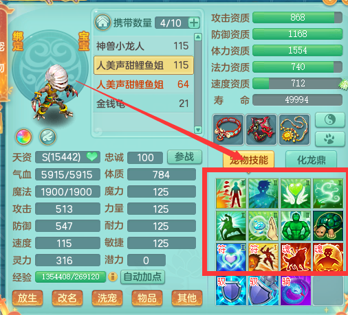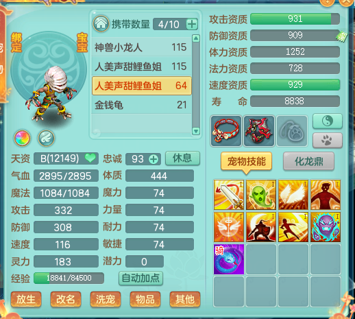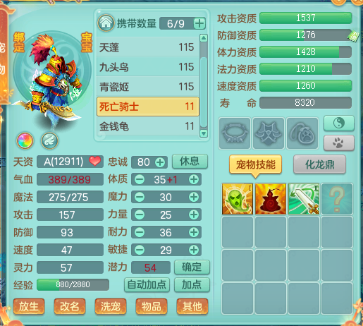 “非贫林”玩家的出路只有一条,那就是通过低成本炼妖,打造10技能尾速宠!尾速宠不看成长,对资质的要求那更是神武最低,只要体资拉满就行。这样的破烂宠物看上去很垃圾但是打架用起来那是真的香~