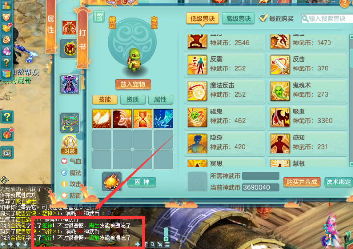 乌龟推荐打凝神+飞行,这两本书掉勇敢+再生的成功率大概在80%