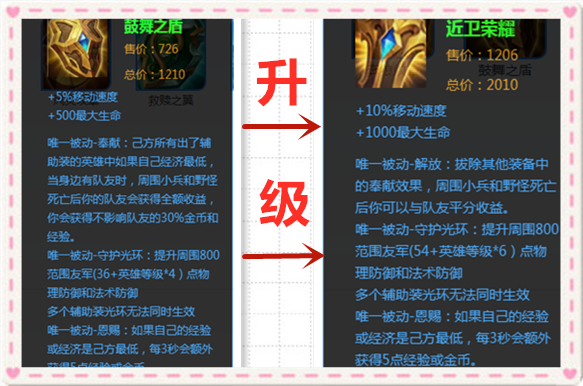售价只需要1210g的鼓舞之盾,到了15级最大可以发挥出3011.5g装备的作用,很夸张又很符合辅助的定位。