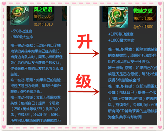 风之轻语/救赎之翼的装备特效是可以给附近友军(包括自己)提高一个和英雄等级相关的护盾。
