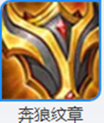 奔狼纹章的技能特效——奔腾号令:给自己和周围的友军增加移速,3秒内会递增35%+15%×英雄等级的移速,一共持续5秒,只要收到攻击就会消失。冷却时间120S。