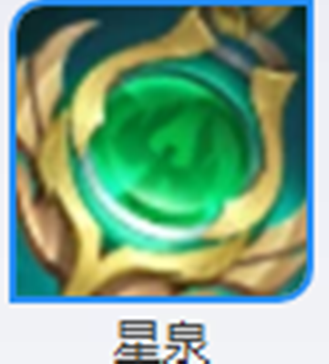 星泉的技能特效——星芒:和周边血量最少的队友进行连接,为他分担50%的伤害,链接过程中为链接方提供20%的伤害减免。