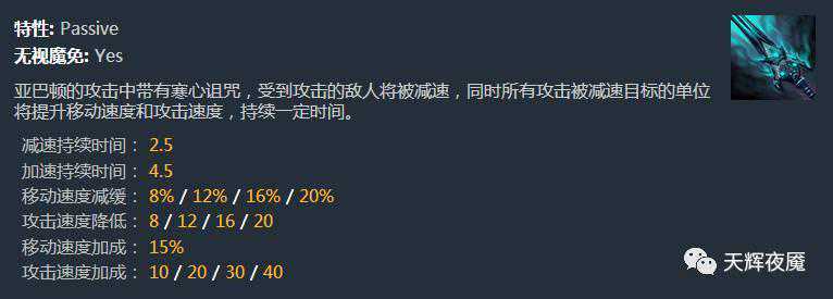 亚巴顿的基础属性、三维成长并不出众,初始攻击力中规中矩,攻击间隔、攻击动作都非常一般,1级出门护甲只有1.43,唯一能拿的出手的属性,恐怕就只有310的移动速度了。这么渣的英雄,凭什么胜率第一?