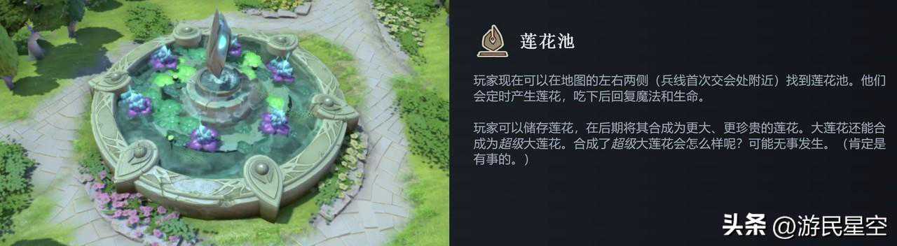 然后是风暴为了加快游戏节奏做出的一些设计,如缩小地图,为玩家增加能快速移动的坐骑,让玩家能更快速地支援,在前线添加可以回状态的生命球和泉水,让玩家不用频繁回家补给,玩家的技能也能伤害防御塔,推塔更快等等。这部分我觉得做的还是比较好的,像是DOTA的7.00和最近的大展宏图版本,也能看到一些方便玩家支援和补给的地图资源,这的确能让对局节奏变得更加紧凑,垃圾时间更少。