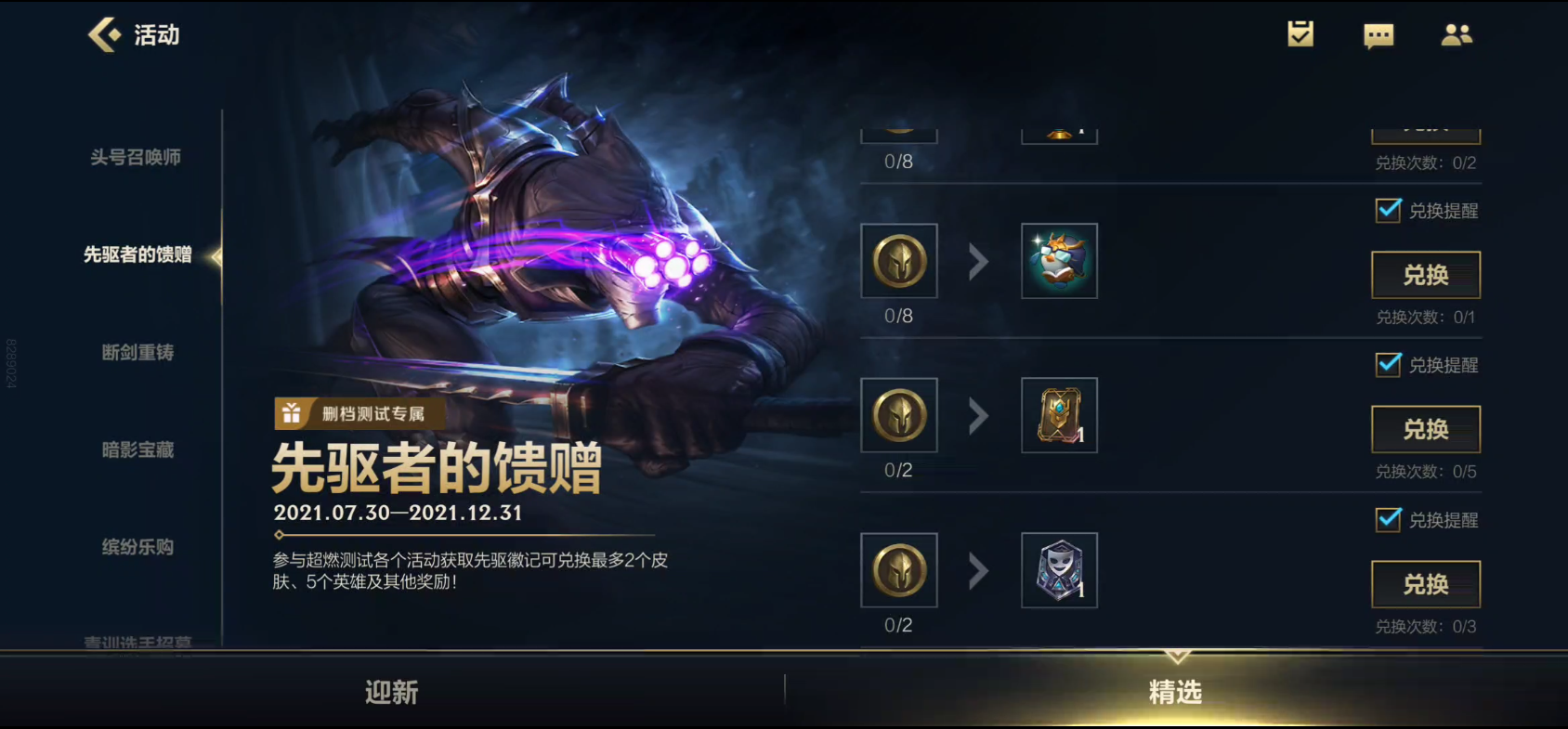 这个活动是玩家在其他活动中可以获得一种名为“先驱徽记”的虚拟道具,然后用先驱徽记来兑换这些宝球,这些宝球奖励包括了2款皮肤,5个英雄以及英雄姿态、表情等道具。