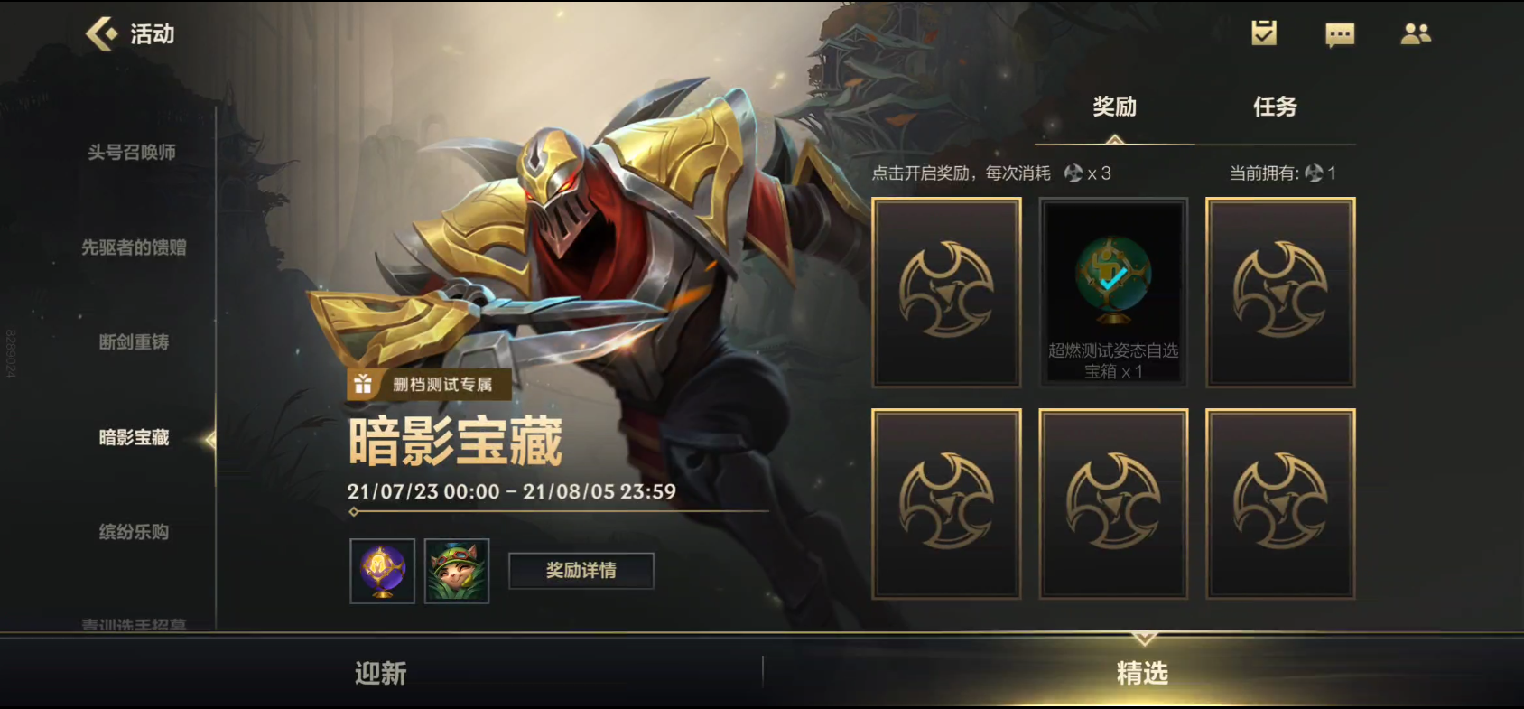 该活动的奖励是一个姿态宝球,一个英雄自选宝球,还有3倍经验卡以及表情,活动的玩法还是很简单的,玩家完成每天三个任务,然后获得钥匙,三把钥匙即翻一张牌,直到翻完。