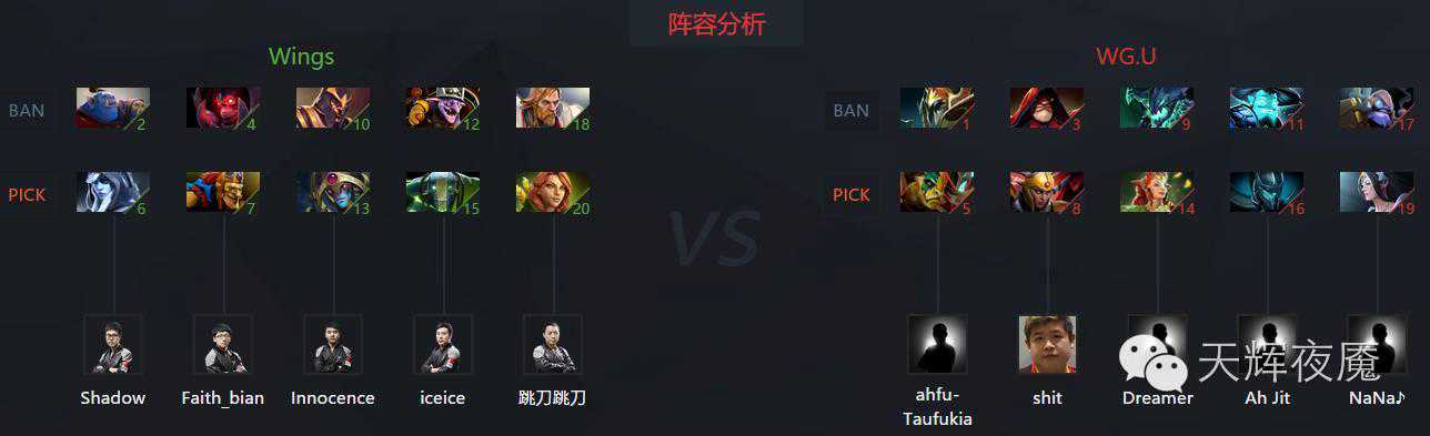 第三局Wings头很硬,继续拿出小黑体系,但这次他们拿到了神谕作为保护性酱油,很关键!选择了PA军团大牛冲脸效果非常不错,跳刀的风行虽然很肥,但是面对的决斗毫无办法,整场比赛非常激烈,但最终靠着滚雪球拿下了胜利。
