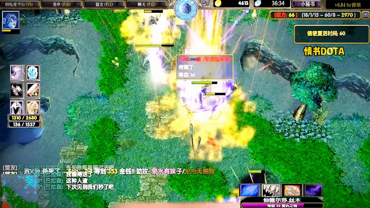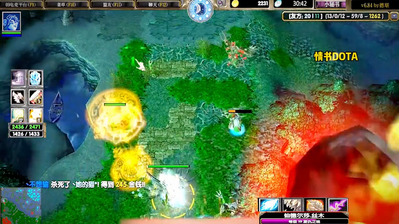 真想不到这局又杀人了,这个我比较乖了,不让他开出风步就把他给秒杀,这边没有数,看这个地形是往哪逃?言归正传。好这个tp取消了言归正传。