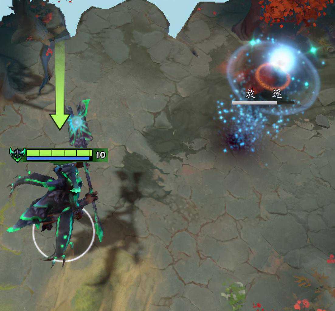 更有精益求精的玩家发明“shift关切16次假腿接陨星锤”这样连Puck都无法逃脱的连招。而笔者则是选用如下图“等到控制条行进到‘逐’字右下角时施放陨星锤”的方法。
