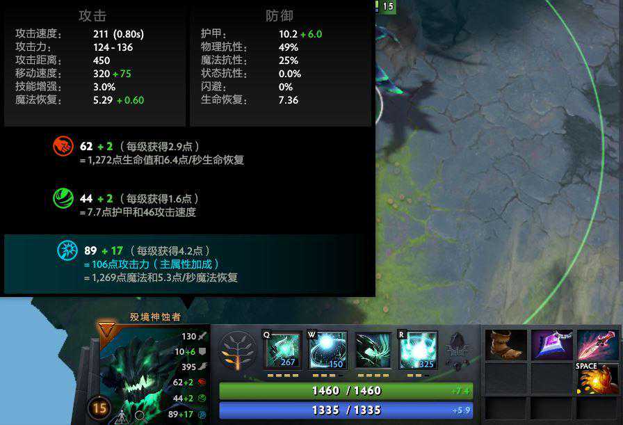 一个15级6千经济的黑鸟将拥有16点护甲,106点智力,211攻击速度