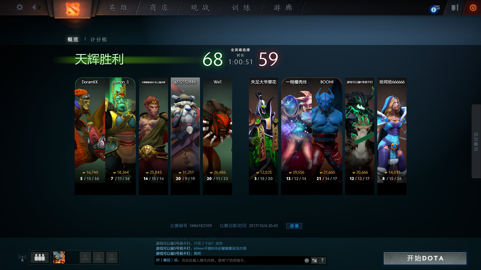 然后后面补出大隐刀、第二把狂战、撒旦(没做完)。开始全程参团,时不时大招清兵带线。