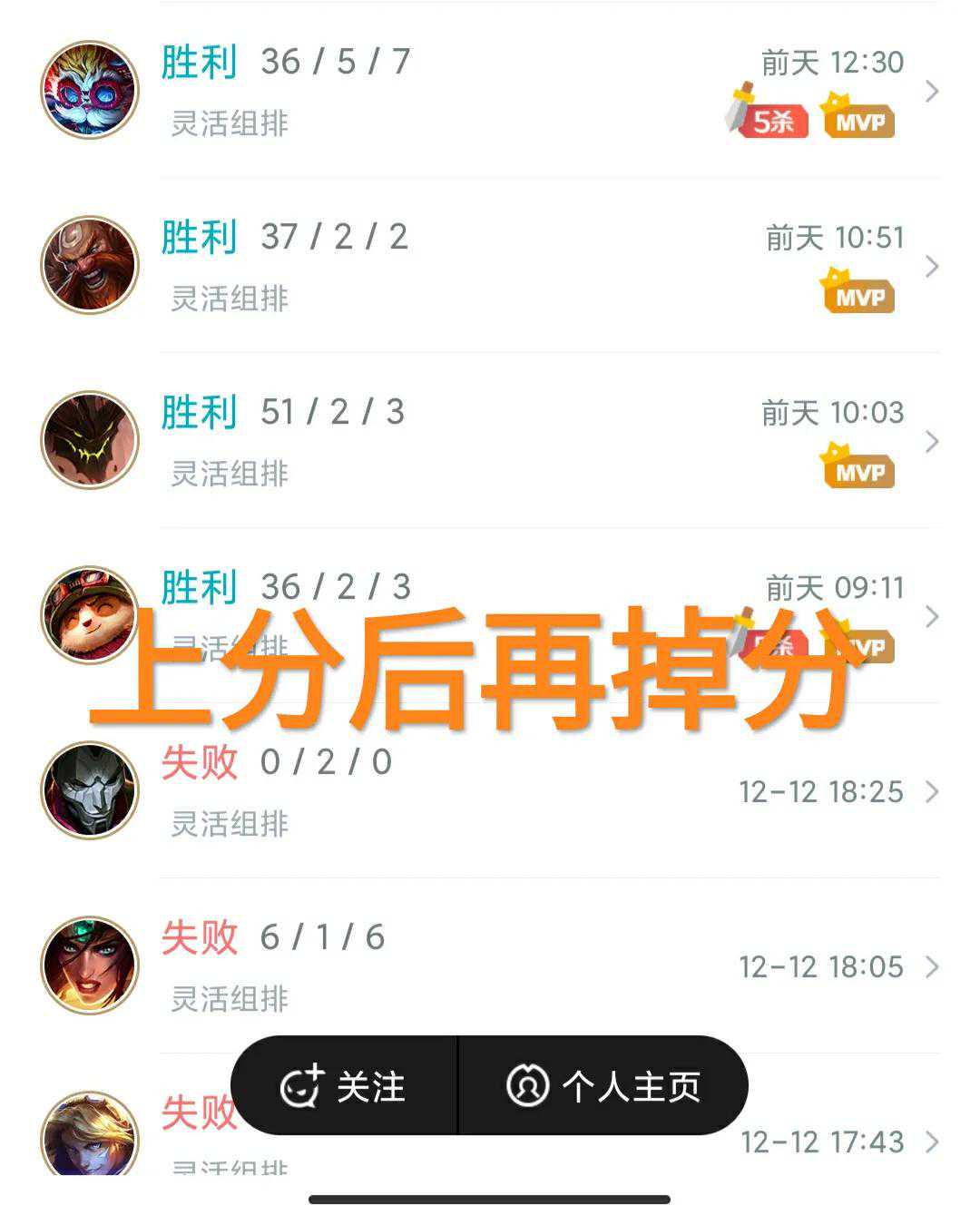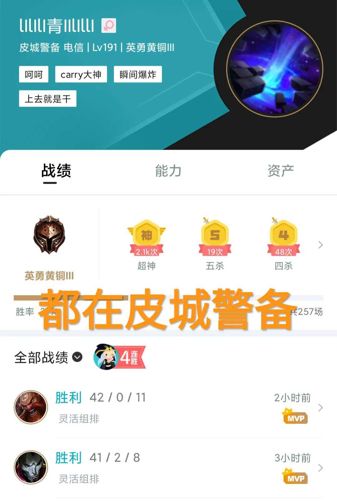 查看了一下战绩,基本上在皮城警备,应该拥有的多个账号,每天都会进行账号的更换,同时和他排位的队友也会换号。就算大家发现了他的一个账号,他还会有多个账号进行游戏。当然喜欢的玩家,也没必要去说些什么,毕竟看他的都是一些节目效果,他自己也没说过要打顶尖的峡谷之巅王者局,绝大多数人看的都是娱乐。当然也希望他能够坦诚一些,像骚男一样,都拥有着顶尖的人气,应该正视自己的一些问题。