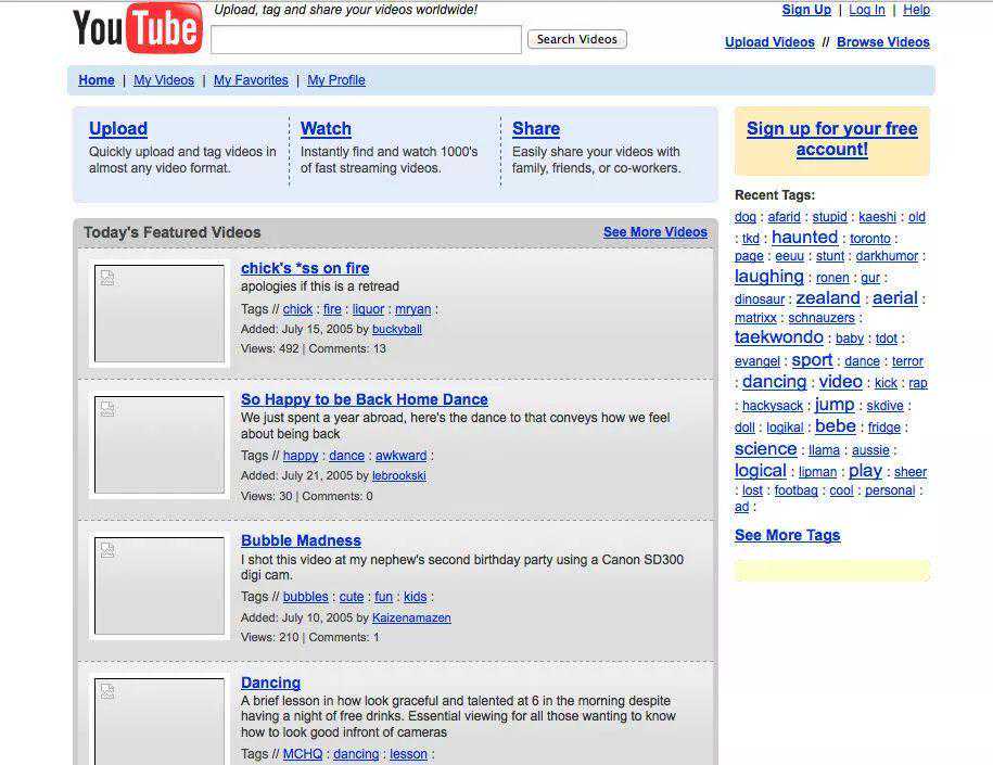 ↑2005年的YouTube界面