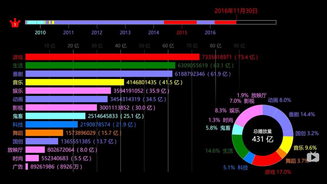 这个策略执行的效果非常好,到2016年的时候,B站播放量第二的区也不是番剧区了,而是以美妆旅游美食内容为主的“生活区”。