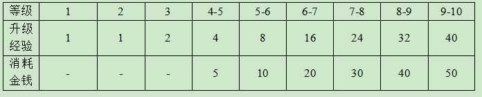 1.前4回合每回合结束获得当前回合数金币,第5回合开始每回合结束:+1经验,+5金币;