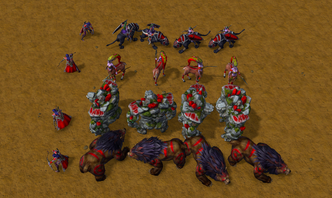 作为一个以三个英雄为主体的战术思路,部队选择上自然也要以英雄为主。所以,前中期,我们可以选择本身练级和压制能力都不错的弓箭手或者女猎手与英雄配合,在练级之余找机会压制下对手;等到游戏来到中后期时,则可以根据作战需求选择比较传统的熊鹿或者山岭巨人加小鹿来配合英雄。