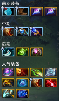 前中期以太透镜,A杖,慧光都是不错的选择,如果想要保命可以选择原力法杖或是永恒之盘,由于EUL神圣法杖的回蓝效果被多次削弱,所以不太推荐选择这件装备作为保命装,除非后期会有需要合成风之杖的可能性(比如对手有虚空假面、谜团)。慧光作为当前版本法系英雄必出的一件装备,在之后的合成路线上,有着散慧对剑和血精石两种不同的选择。两件装备各有各的优点,散慧双刀价格更加低廉,但能够提供比14格血精石更高的技能增强,以及22%的状态抗性,而血精的成长性更佳,并且能够提供技能吸血,一分价钱一分货,到大后期还是血精石更佳。