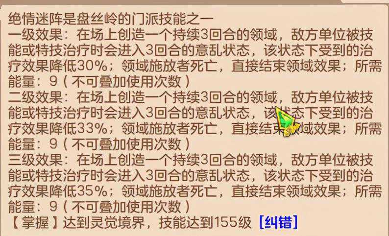 绝情迷阵领域下对面使用药物也会进入意乱状态3回合,盘丝的技能综合起来就一个特点:恶心他妈给恶心开门,恶心到家了~