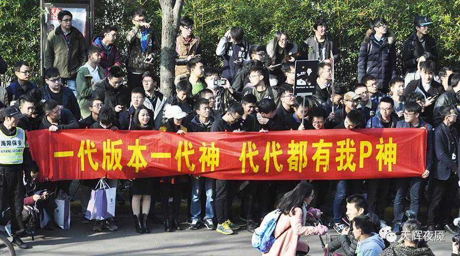 随着红毯时间的临近,现场的粉丝们也逐渐多了起来,在众多的粉丝团当中,尤以P神的粉丝团最为庞大,除了上图这款横幅之外,他们还准备了海报、手幅、LED灯版等道具来为自己的偶像呐喊助威。