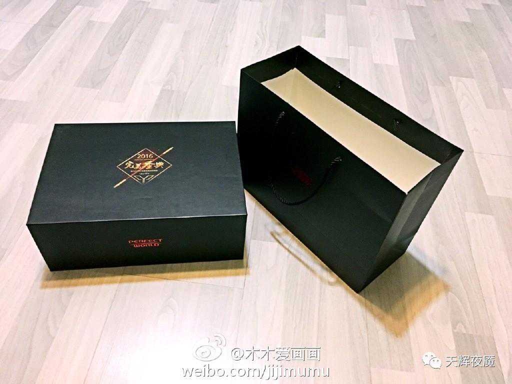 当然福利也不是一点没有啦~完美世界精心准备了一个大礼包作为纪念品!小编有幸也收到了一个,正好@木木爱画画木总拍了照片,效果非常好,小编就偷个懒,转过来给大家解解馋,先看看高端大气上档次的包装: